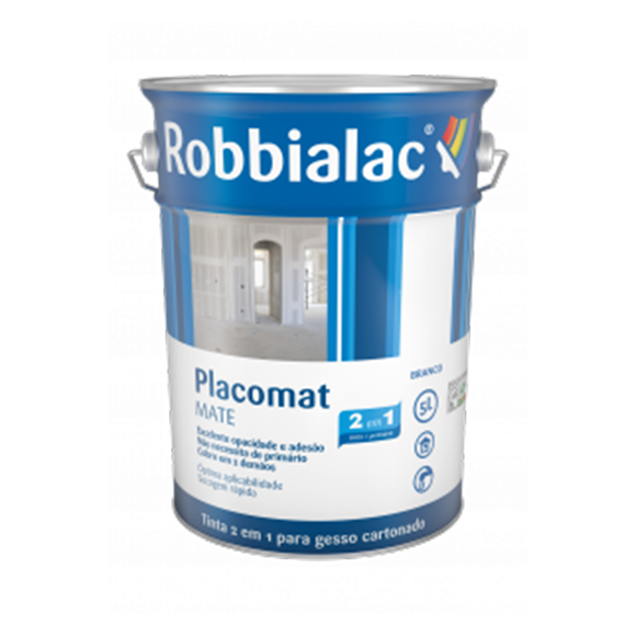 Tinta mate 2 em 1 para aplicação direta sobre paredes interiores de gesso cartonado permitindo disfarçar as emendas nas zonas das juntas entre placas.