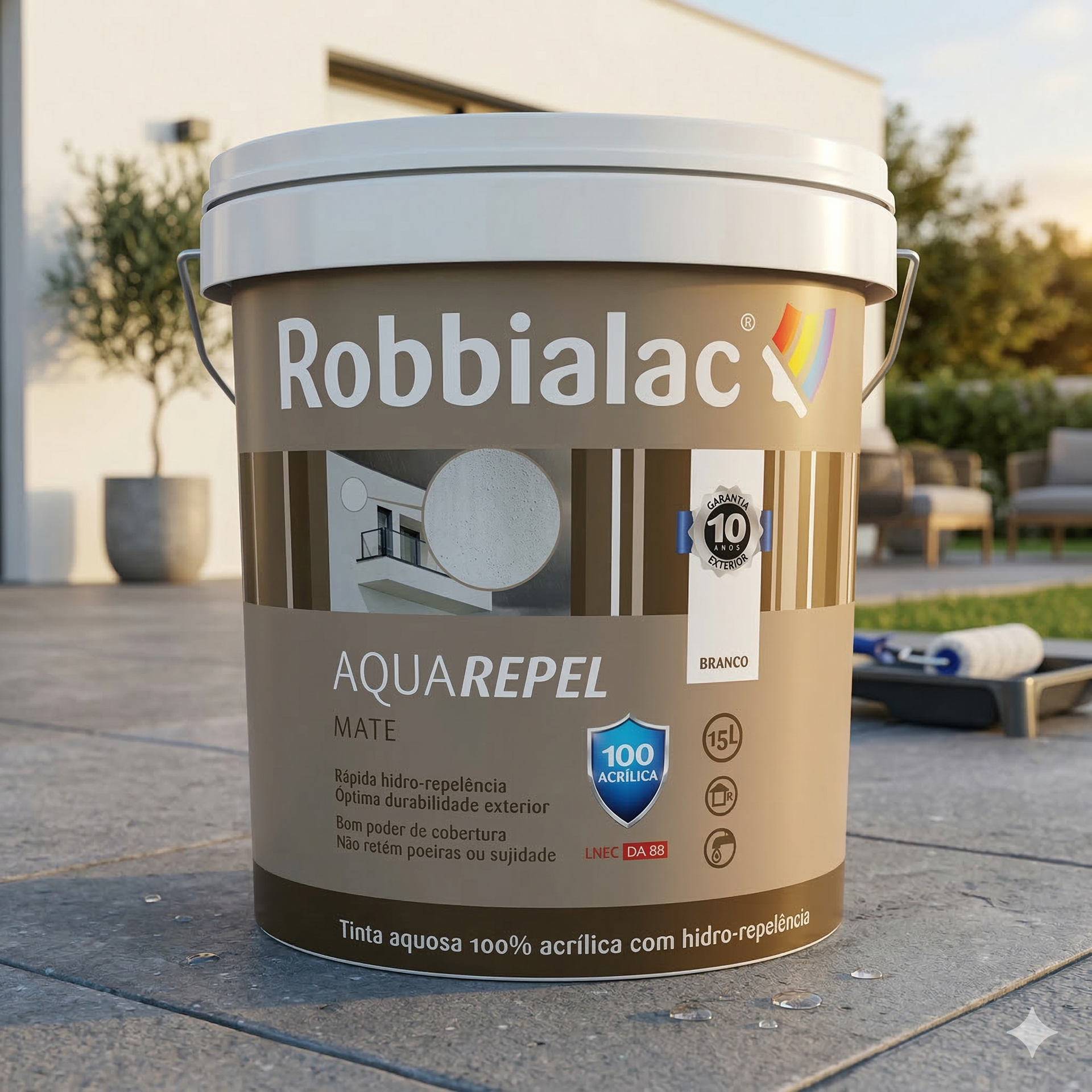 Tinta aquosa mate baseada numa tecnologia 100% acrílica, com excelente durabilidade exterior e resistência à água.